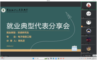 为进一步推动我院学子顺利迈向就业岗位,信息与电气工程学院于2月2日举办了一场就业事迹经验分享活动。此次活动邀请了2020级三位优秀学生,他们分别来自电气工程及其自动化3班的于圣坤,电子信息工程1班的杨周发,以及电子信息工程2班的邢先芝。他们分别就自己的就业经历,为在场的同学们分享了宝贵的经验。