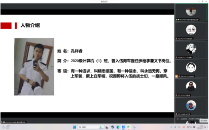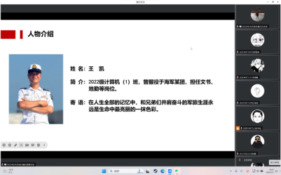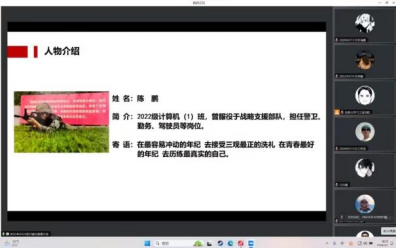 这场分享会的嘉宾包括:2022级计算机(1)班陈鹏,2022级计算机(1)班王凯,以及2020级计算机(1)班孔祥睿。他们是当代大学生的优秀代表,积极投身国防事业,用实际行动诠释了青年学子的责任担当。