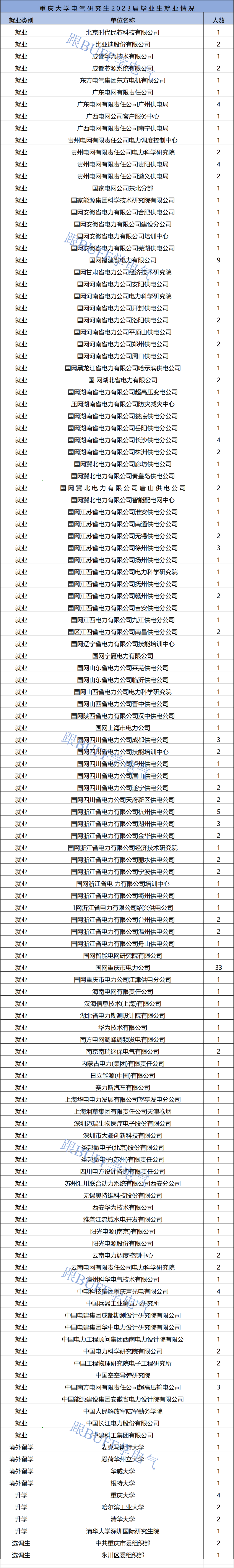 文末附重庆大学电气研究生2023届毕业生就业情况。