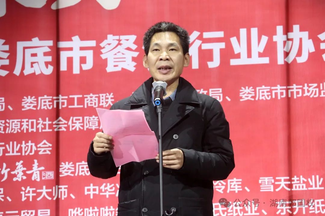娄底市餐饮行业协会会长刘永平致欢迎词。郭国权 摄