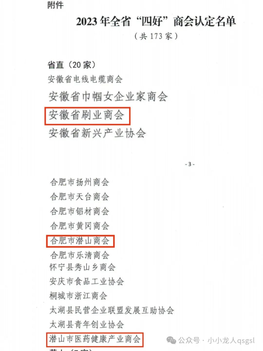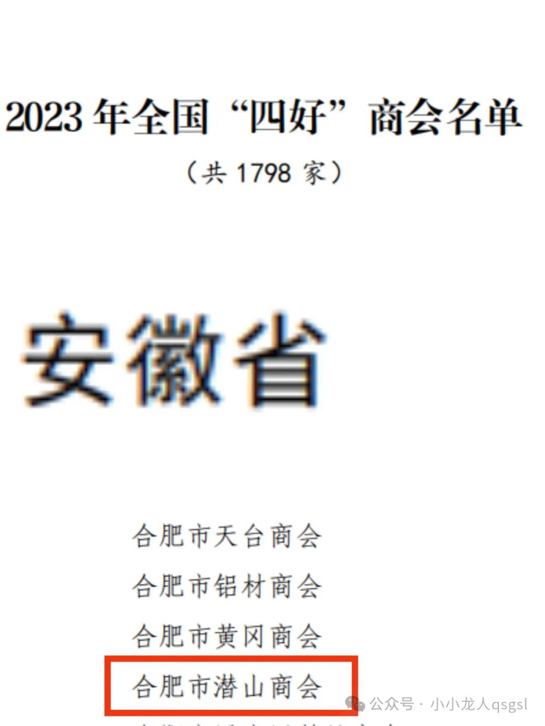 1月29日,安徽省工商联印发《关于认定2023年全省“四好”商会的通报》,合肥市潜山商会、潜山市医药健康产业商会和安徽省刷业商会被认定为2023年全省“四好”商会。