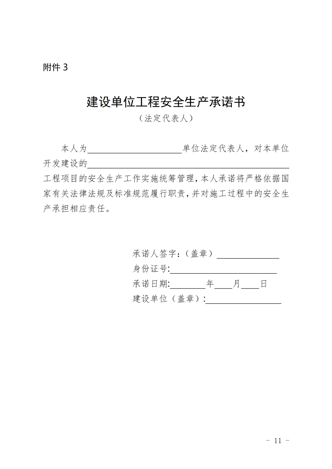第五条 (安全生产责任制)建设单位应当牵头落实安全生产责任制,建设单位法定代表人及项目负责人应当按照规定签署《建设单位工程安全生产承诺书》(见附件3)。