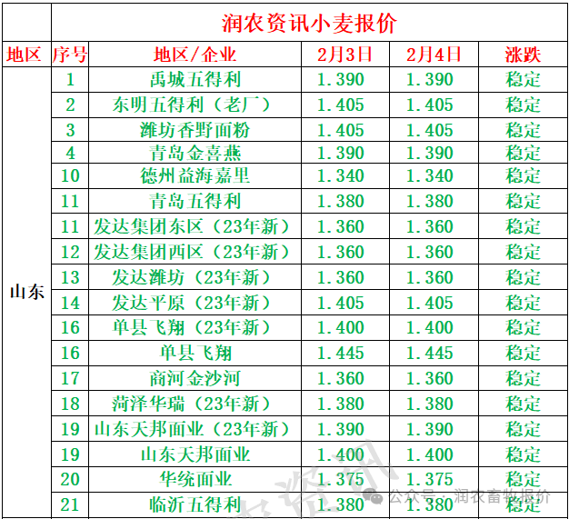 山东利生食品集团有限公司:24年2月1日17:00点起小麦停止收购、春节后收购日期另行通知、感谢大家一年帮助。祝愿大家:身体健康、龙年发大财