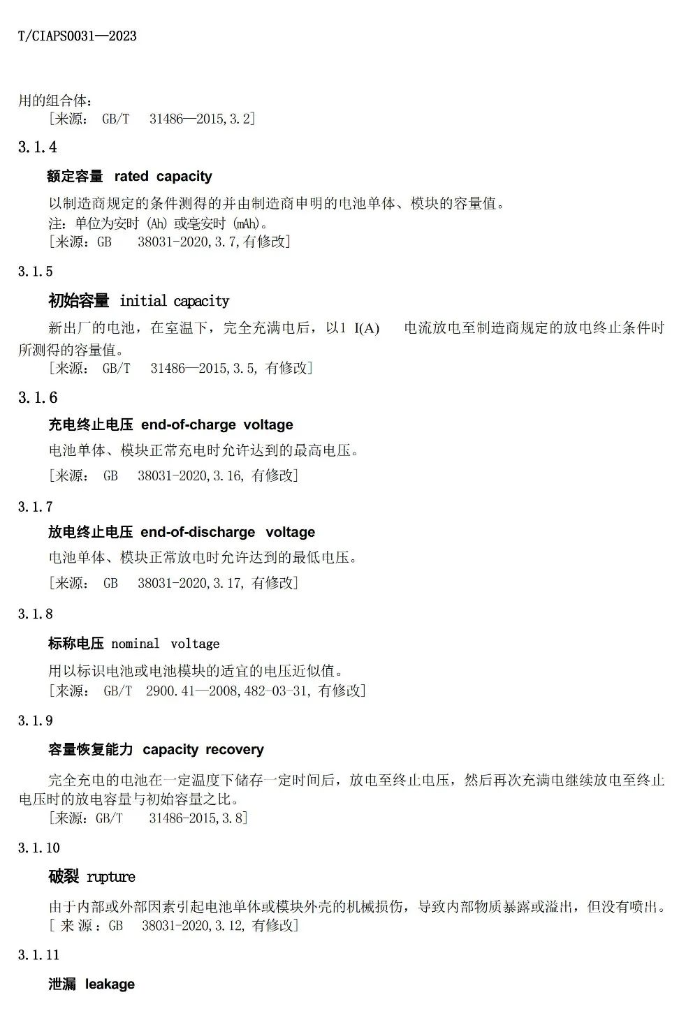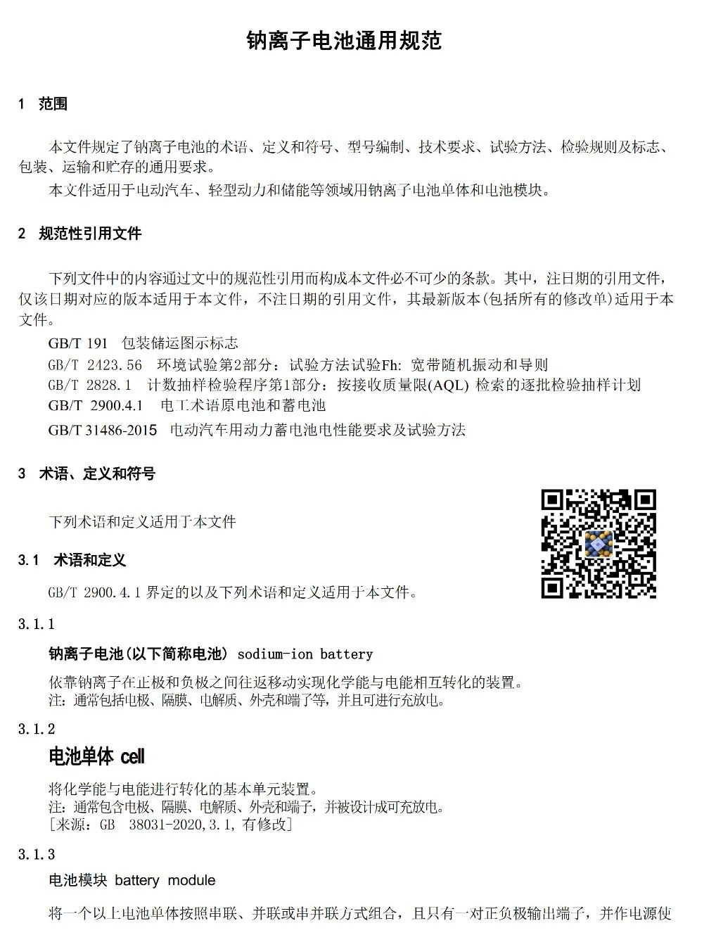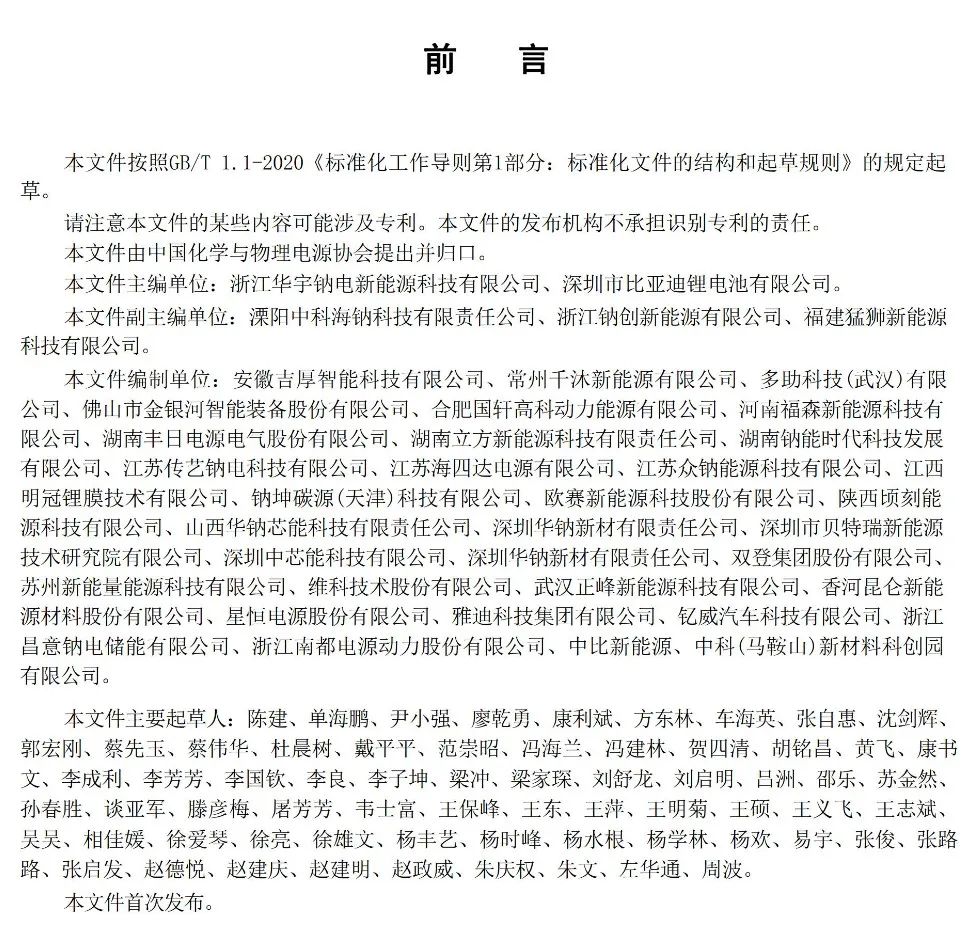 钠离子电池通用规范