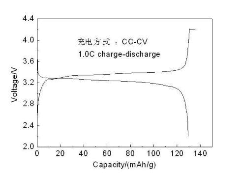 *采用该方法做成的实验电池首次充放电容量为151mAh/g。该方法目前有少数几家企业在应用,由于该法的生产过程较为简单可控,且采用一次烧结,所以它为LiFePO走向工业化提供了另一条途径;但该法制备的材料较传统的高温固相法容量表现和倍率性能方面偏低。
