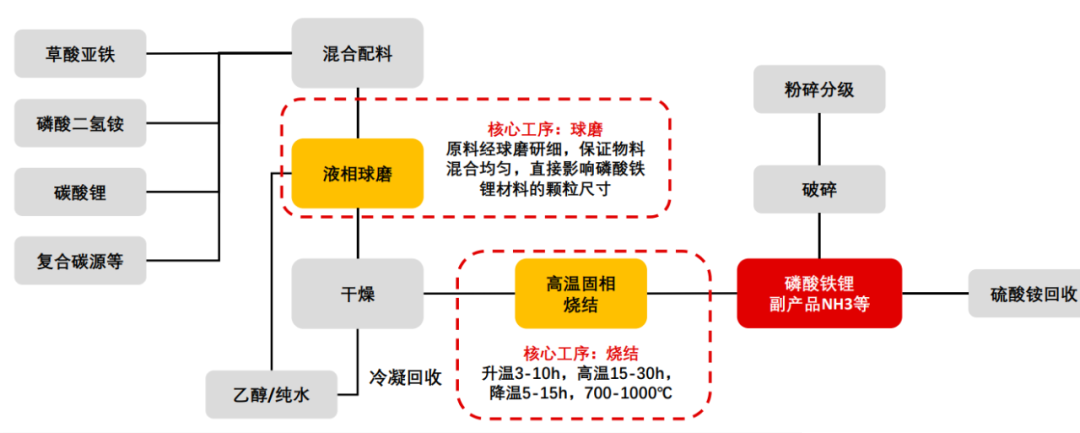 3、磷酸铁锂的生产工艺流程。