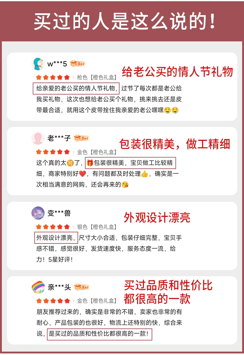 品质这么好的皮带,不止可以自用,更适合送给家人~硬卡纸上下盖礼盒,还有抽绳防尘袋,外加高档手提袋,满满仪式感!