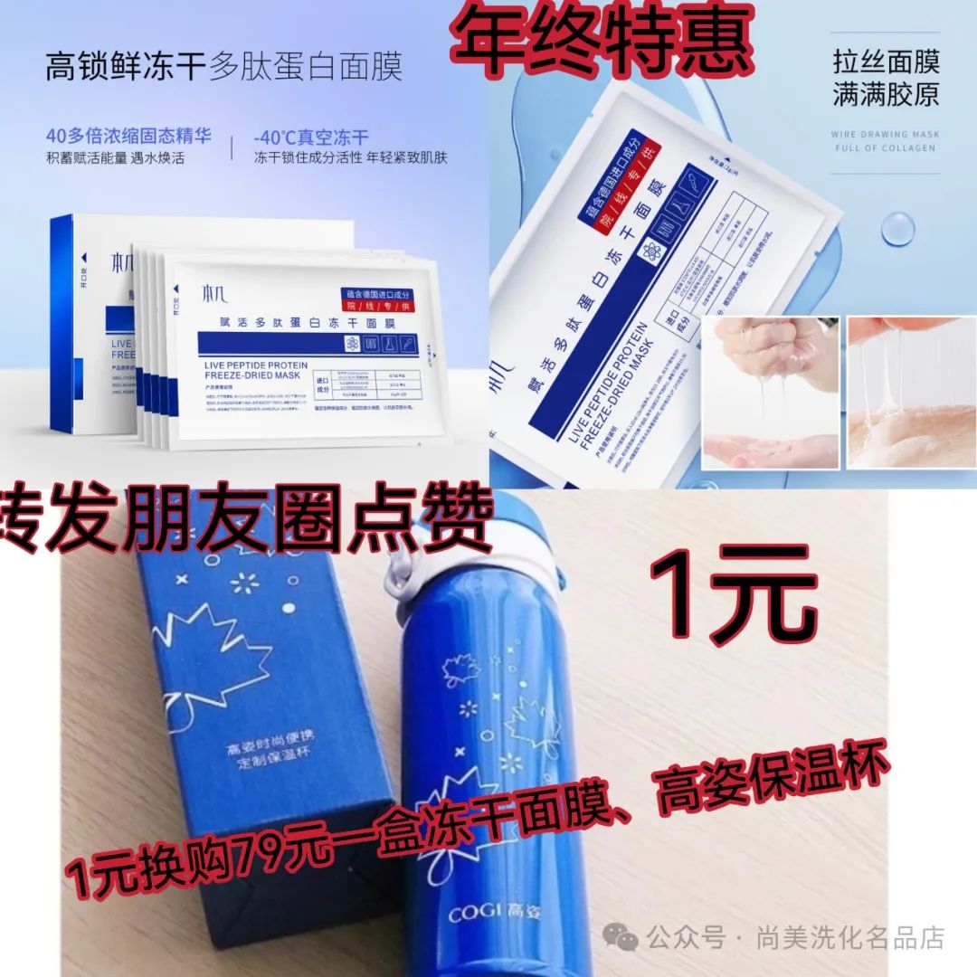 1元换购79元冻干补水修复面膜,高姿保温杯