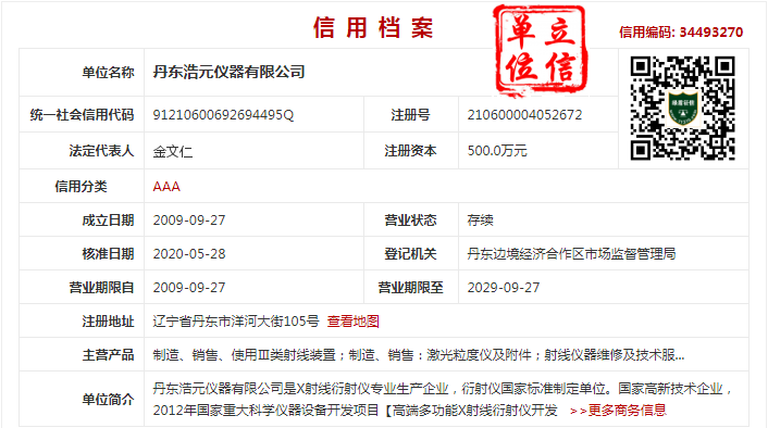 丹东浩元仪器有限公司是X射线衍射仪专业生产企业,衍射仪国家标准制定单位。国家高新技术企业,2012年国家重大科学仪器设备开发项目【高端多功能X射线衍射仪开发】牵头单位。