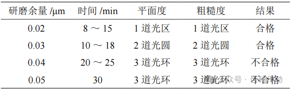 表 2 不同研磨余量对动环平面度和粗糙度产生的影响