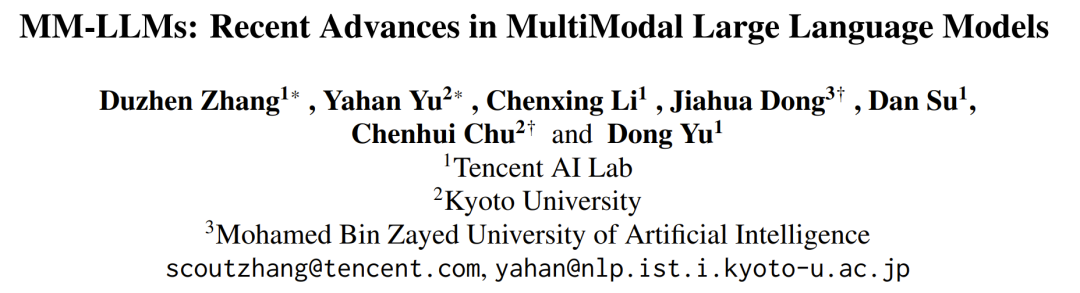 论文标题:MM-LLMs: Recent Advances in MultiModal Large Language Models 论文地址:https://arxiv.org/abs/2401.13601