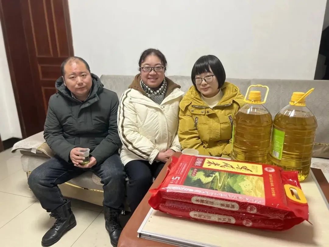在走访慰问活动中,商会领导与员工家属亲切交谈,询问身体状况、生活情况,并送上米、油等生活物资,让大家感受到商会的关心关怀。
