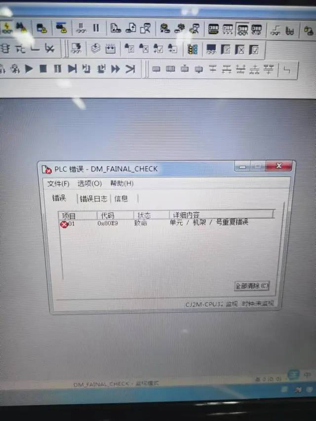 一台设备开不了机,检查发现欧姆龙PLC报警,而且是致命错误