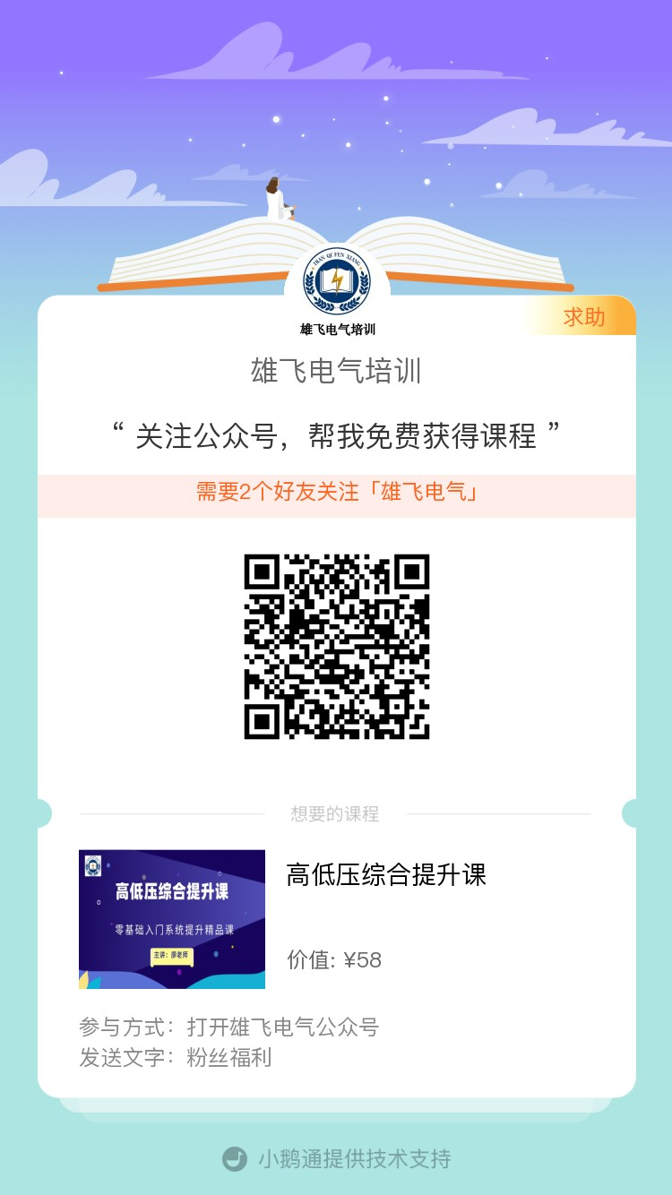 长按图片扫码关注公众号,邀请两个好友关注“雄飞电气”发送文字粉丝福利,即可免费获得价值58元的高低压综合提升课。