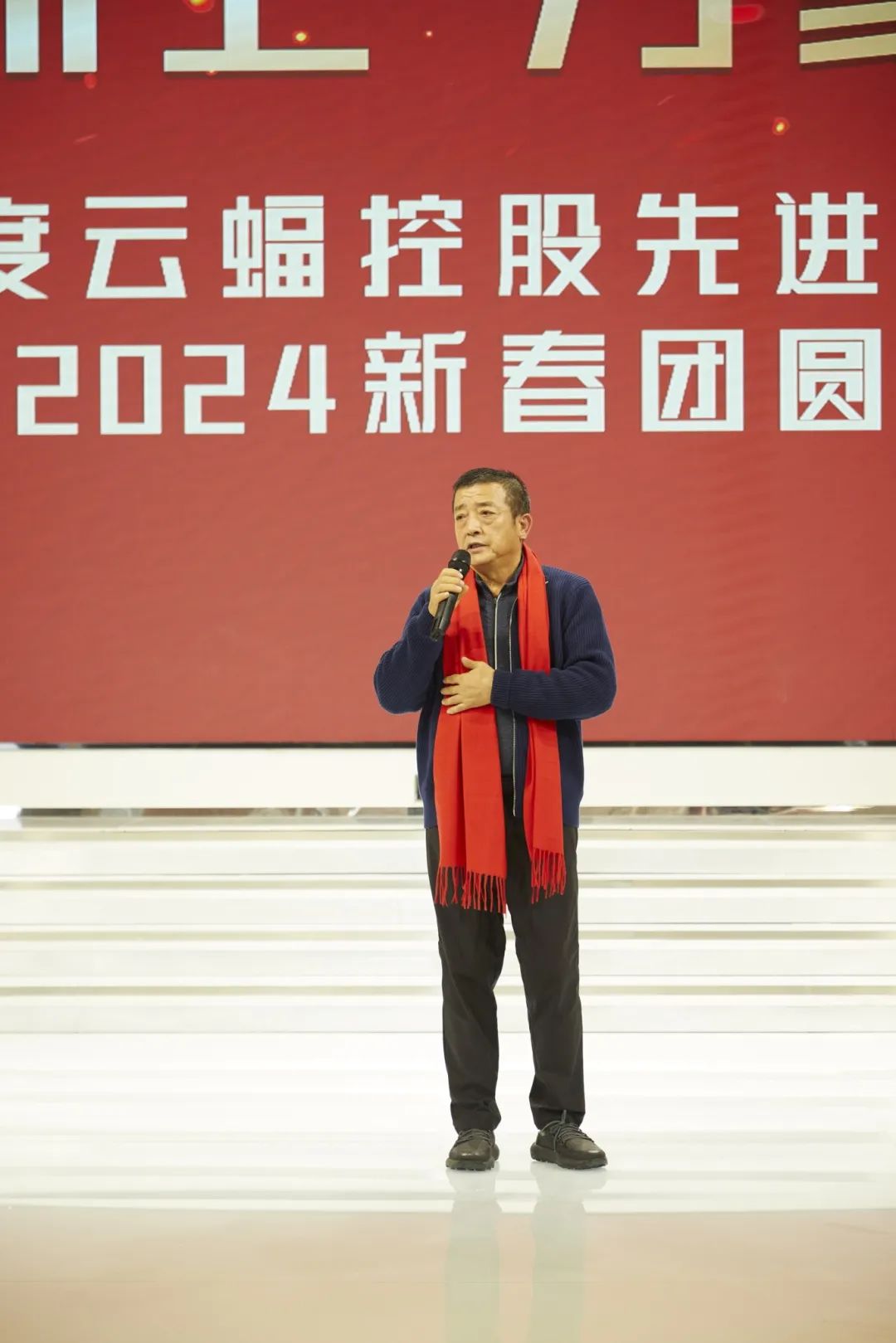 随后,云蝠控股董事长郭健上台发表新春贺词。他表示,云蝠面对充满未知与挑战的2024年,一定会紧跟时代潮流,把握住更大的机遇,坚定迈向新零售赛道,与各位家人一起创造更佳的战绩。