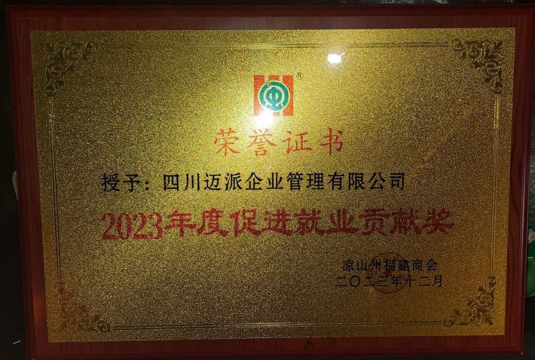 其团队2023年度在凉山州所做贡献获得了凉山州福建商会领导班子的一致认可,授予其“2023年度促进就业贡献奖”。