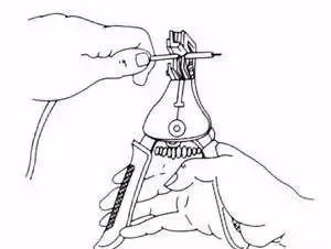 必须按照图所示方法握妥笔身,并使氖管小窗背光朝向自己,以便于观察。