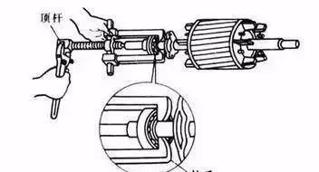 顶拔器俗称拉具,分为双爪和三爪两种,是拆卸皮带轮和轴承等的专用工具。顶拔器形状和使用方法如下图。使用时各爪与中心丝杆应保持等距离。