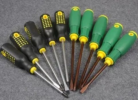 螺钉旋具俗称起子、螺丝刀,用来拧紧或旋下螺钉。电工不能使用金属杆直通柄顶的螺钉旋具(俗称通芯螺丝刀)。应在金属杆上加套绝缘管。