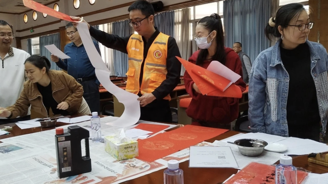 活动上,书法老师们齐聚一堂,红纸铺展,毛笔轻舞,一副副对仗工整、寓意吉祥的春联,一个个饱满的“福”字跃然纸上,春联内容既有喜迎龙年、辞旧迎新的美好愿景,也有平安吉祥、和谐发展的美好期盼。每一笔、每一划都寄托着大家对新年的美好祝愿。现场热闹非凡,年味浓浓。