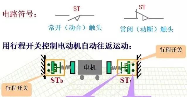 行程控制:控制某些机械的行程,当运动部件到达一定行程位置时利用行程开关进行控制。