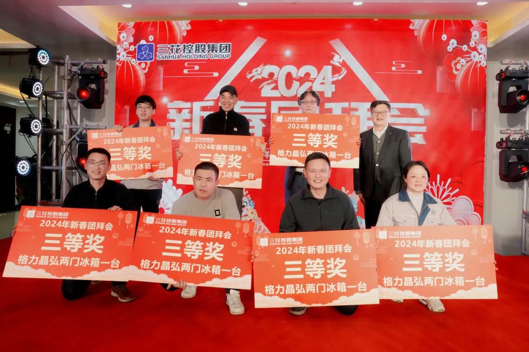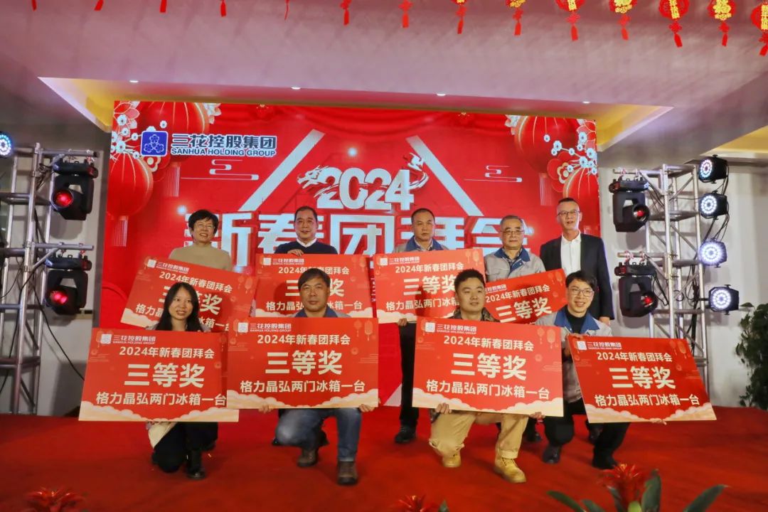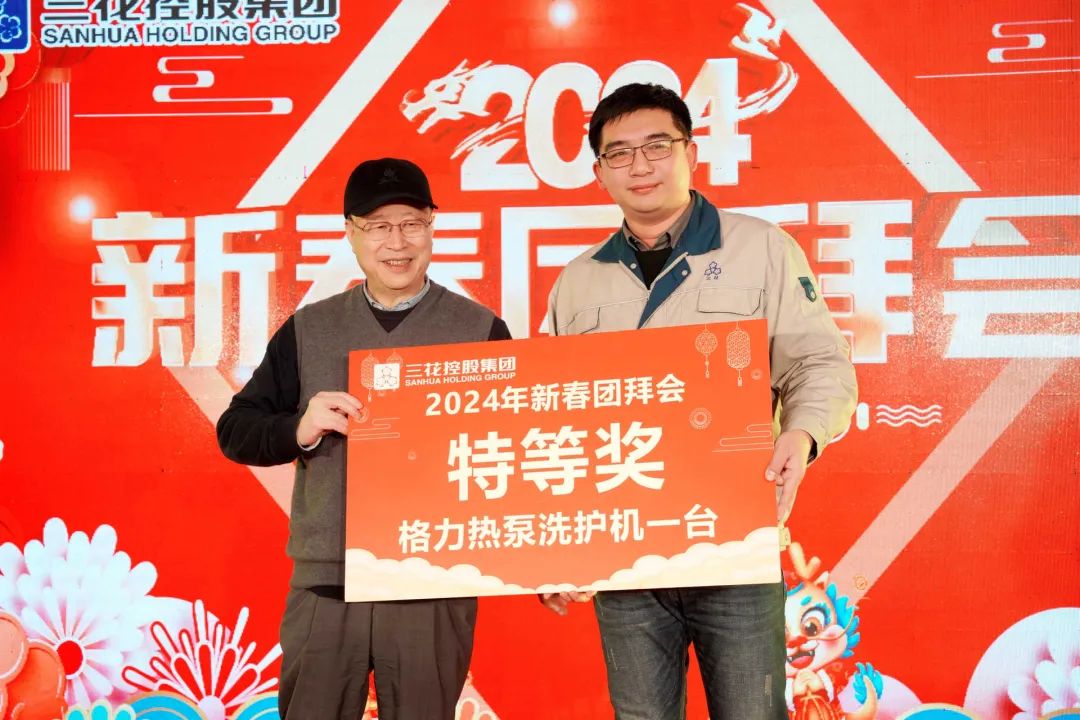 在期盼的目光与热烈的欢呼声中,最激动人心的时刻到来了。今晚唯一的特等奖由敬爱的张道才主席抽取,奖品是热泵洗护机一台。伴随着超级幸运儿名字的出现,团拜会的气氛达到了最高潮,热闹的晚会在祝福与欢笑声中圆满结束。新的一年,三花人将一起沉淀过往,共同揭开新章,点燃希望的火焰。
