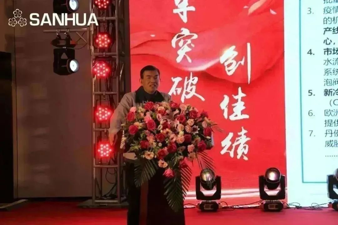 回首过往,三花一路披荆斩棘,抓住时代转变的机遇,在全球化的浪潮中,踏浪前行。男主持杨伟钢为大家带来歌曲《浪花一朵朵》。在激荡人心的旋律中,三花人在新的一年继续前行。