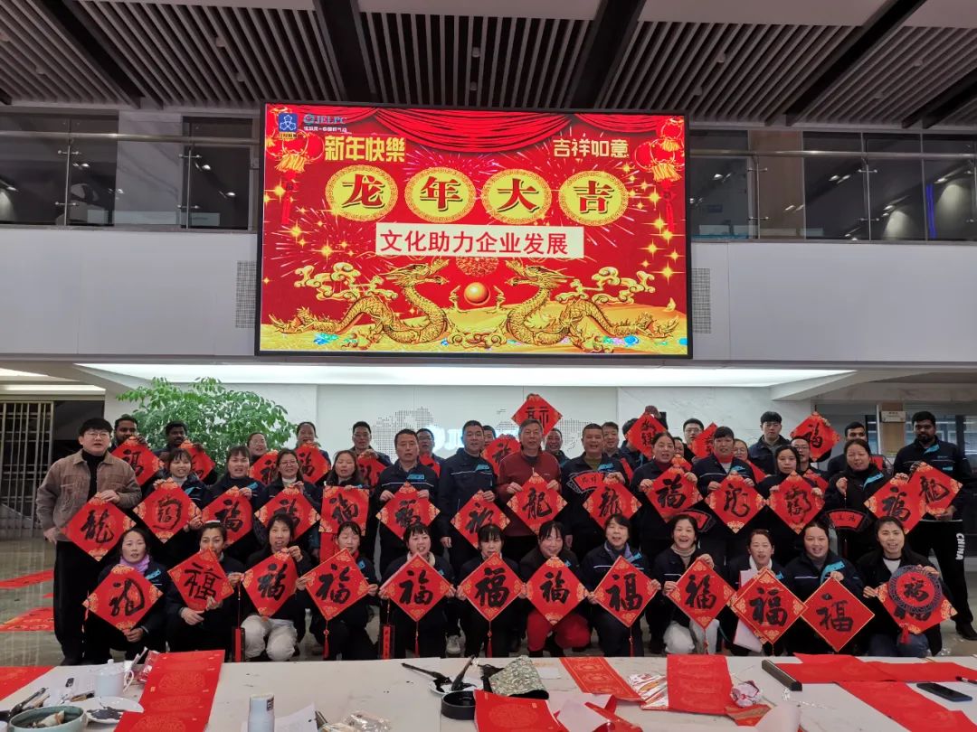 佳尔灵于1月25日及2月3日举办了主题为“墨香满溢,接春纳福”的新春锦溪书画艺术家大型笔会活动,16位书画家为公司创作百余幅作品,佳尔灵总经理单谟君邀请客户及员工一同欣赏创作过程并挑选心仪作品作为新年礼物。同时,十多位书法家为公司员工送上新春对联和祝福。印度籍员工也参与其中,执笔写下“福”字和英文“FengHua Nice”,表达对中国春节文化的认同。