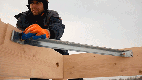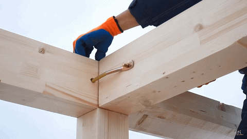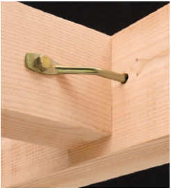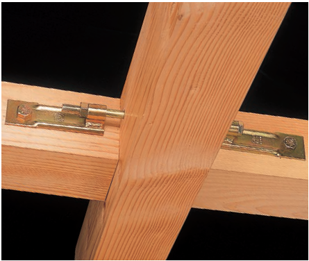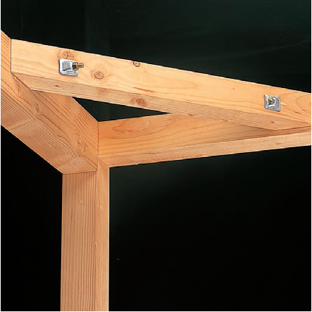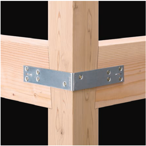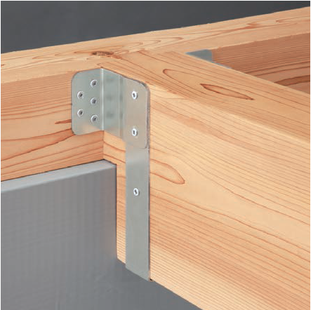 由于木构件截面通常较小(150mm以下),梁梁、梁柱连接通常采用各式羽子板(毽形螺栓)拉结或采用角码固定,施工简便。下图仅示出了几种代表性五金件,实际应用中,各种边柱、角柱、边梁、中梁连接件种类繁多,但实质上大同小异。