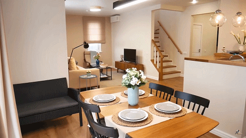 一层主要作为餐厅和客厅,一家人的休闲、饮食、接待朋友都可以胜任。二楼作为卧室,睡眠休息不被打扰。二层之上还有阁楼,为贮藏和儿童活动提供空间,整体装饰风格简约温馨。