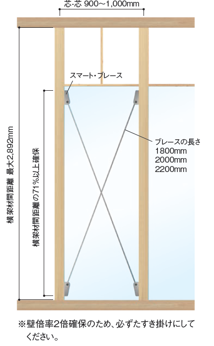 关于壁倍率, 《建筑基准法》规定“当单片剪力墙的承载力达到1.96 kN/m时(中震层间位移角达到1/120),该墙的壁倍率为1”,若某方向上布置m米壁倍率为n的剪力墙,则该方向的总抗侧承载力为(m×n ×1.96)kN。