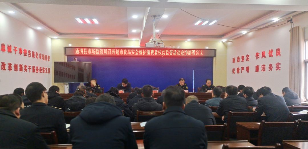 为进一步规范超市、农贸市场等食品安全经营行为,维护消费者合法权益,1月29日,通渭县市场监管局召开超市食品安全维护消费者权益监督活动安排部署会议,县局党组成员、直属单位负责人、局机关各股室负责人,各乡镇市场监管所所长参加会议。