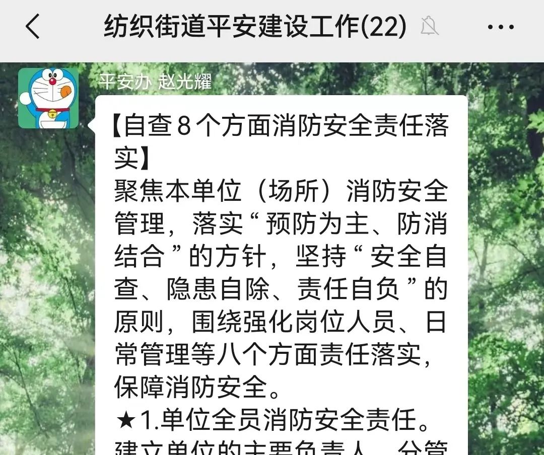 连日来,纺织街道密切配合区教体局、消防救援支队、公安等部门对辖区校外培训机构进行消防安全专项检查,对排查发现的逃生通道不足、消防通道不畅、窗户封堵等行为就地下达限期整改通知。各社区联合纺织街道市场监督管理所、工业街派出所等部门深入辖区,重点排查辖区内“九小场所”、多业态混合生产经营场所和人员密集场所,严查违法违规用火用电、施工作业和生产经营、安全疏散条件不足、违规设置防盗网和广告牌等问题隐患,坚决防范和遏制发生较大或有影响火灾。