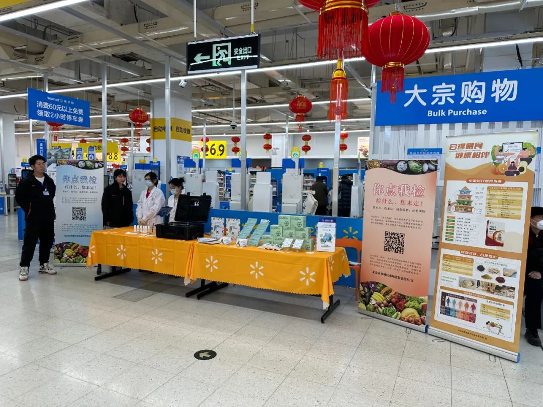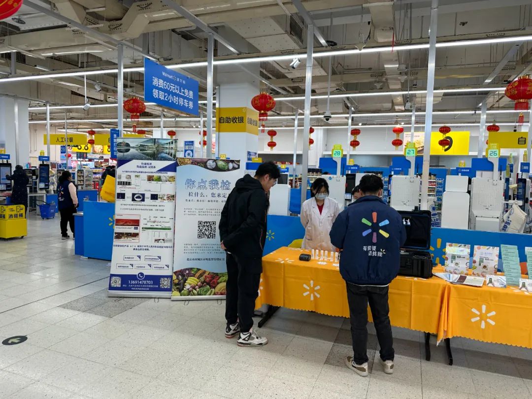 在沃尔玛超市活动现场,工作人员热情地向市民发放食品安全科普宣传资料,并详细介绍了“你点我检”活动的具体内容和意义。