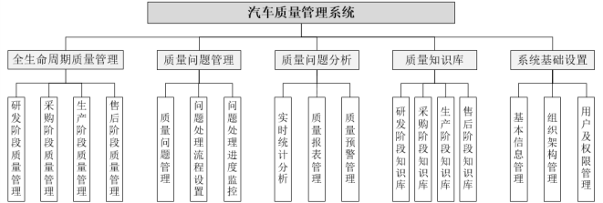 图7 汽车质量管理系统功能模块设计图