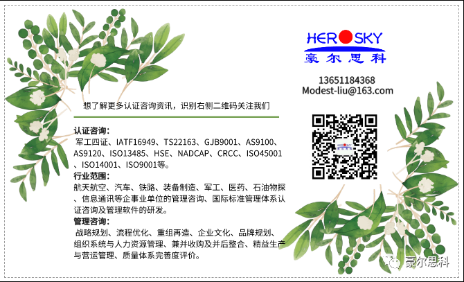认证咨询:军工四证、IATF16949、ISO22163、GJB9001C、AS9100D、AS9120、ISO/IEC17025、ISO13485、HSE、NADCAP、SIL、TISAX、IS026262、ASPICE、ISO21434、ISO45001、ISO14001、ISO9001、ISO50001等。