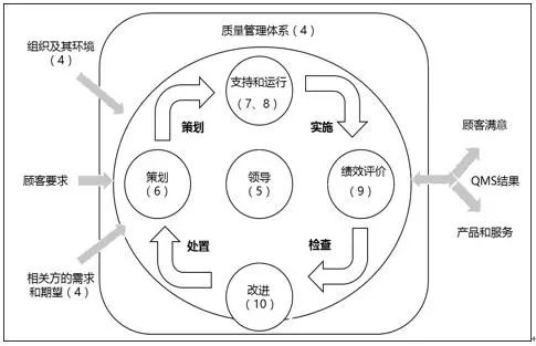 IATF16949采用过程方法,该方法结合了PDCA循环与基于风险的思维。PDCA循环能够应用于所有过程及整个质量管理体系中,图3表明了本标准第4章至第10章是如何构成PDCA循环的。