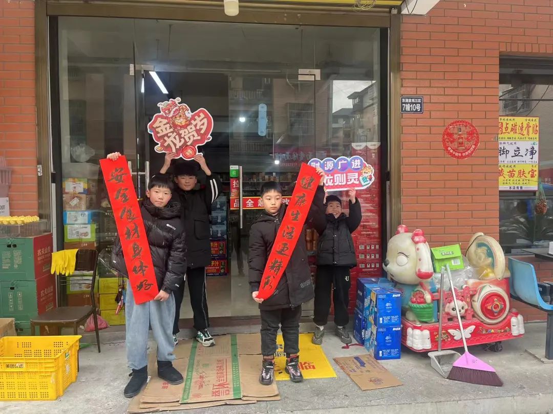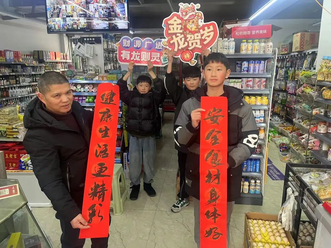 随后孩子们化身“小小食品安全员”,将学到的食安知识应用到实践中来。大家向小区里的沿街商铺发放宣传资料、检查商铺的食品安全情况。孩子们热情洋溢地向店主们送上食安春联及最诚挚的新春祝福。