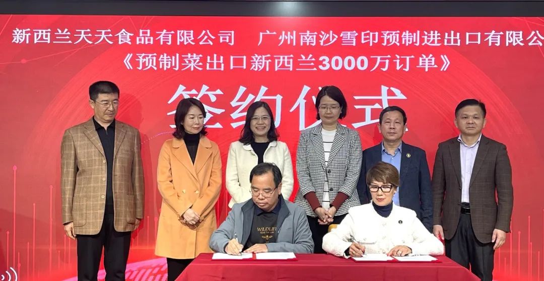 在这班承载“年味”的航班起飞的前三天,2月1日上午,大湾区预制菜(南沙)出口基地-预制菜出口新西兰战略合作框架签约仪式在广州南沙举行。当天,新西兰粤商会会员企业---新西兰天天食品有限公司与广州南沙雪印预制进出口有限公司签订了3000万元预制菜出口新西兰订单。