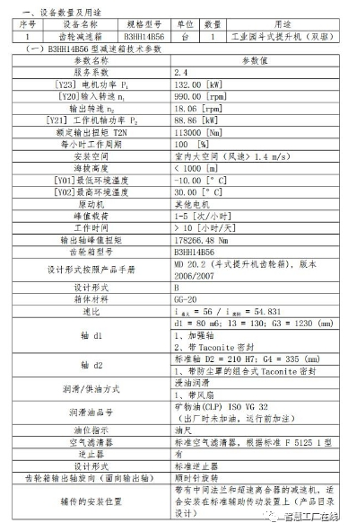物资名称:齿轮减速箱2台(B3HH14B56)、 轴承3套