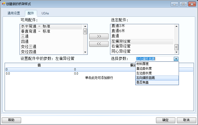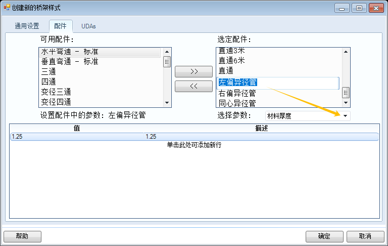 选定所需的配件后,在选择参数处调整参数类型,在值属性栏调整参数数值即可。