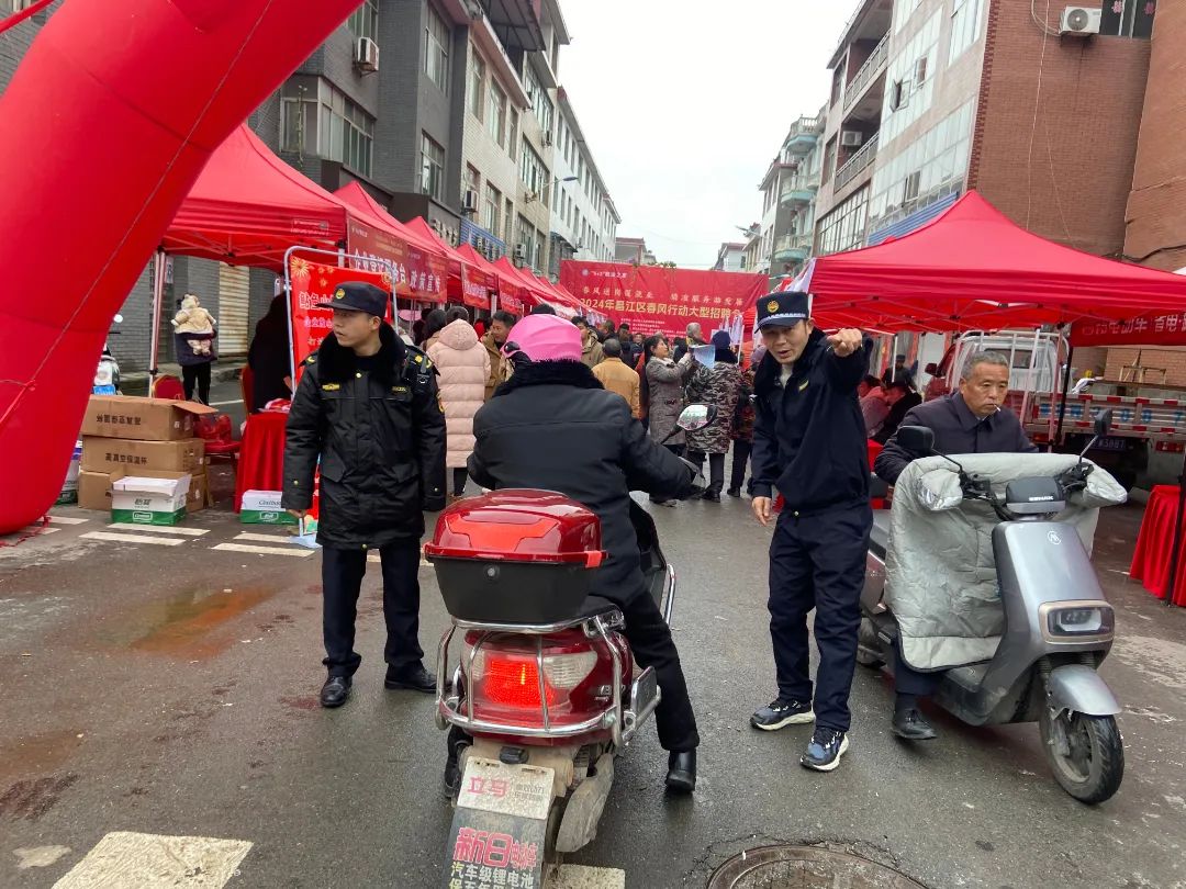 活动开始前,中队执法人员早早到达现场,根据事先制定的保障方案,将“招聘会出入口”和“车辆临时停放点”列为重点保障点位,引导应聘群众有序入场,指引各类车辆有序停放,积极维护现场秩序。大家合理分工,措施到位,保障招聘会顺利开展。