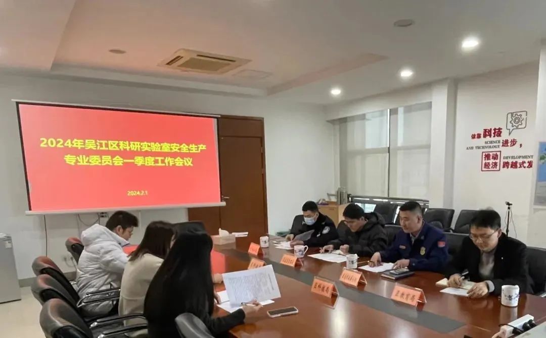 ➤吴江区科研实验室安全生产专业委员会召开2024年一季度工作会议。会上,区科研实验室专委会学习了近期各级安全生产工作会议精神和要求,区科技局对区科研实验室专委会工作情况作汇报,各成员单位围绕推进科研实验室安全工作和下一步工作打算进行交流讨论。同时,会议部署了2024年安全工作及岁末年初科研实验室安全防范工作。