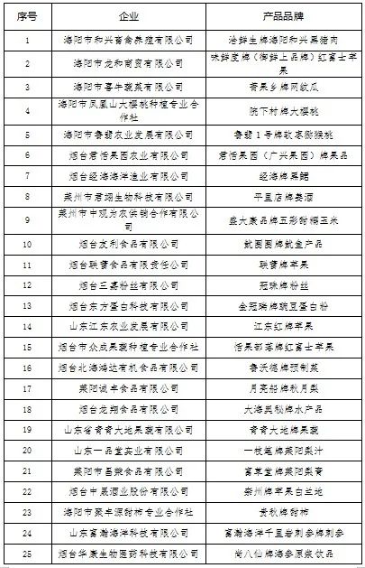 市级知名农产品企业产品品牌名单