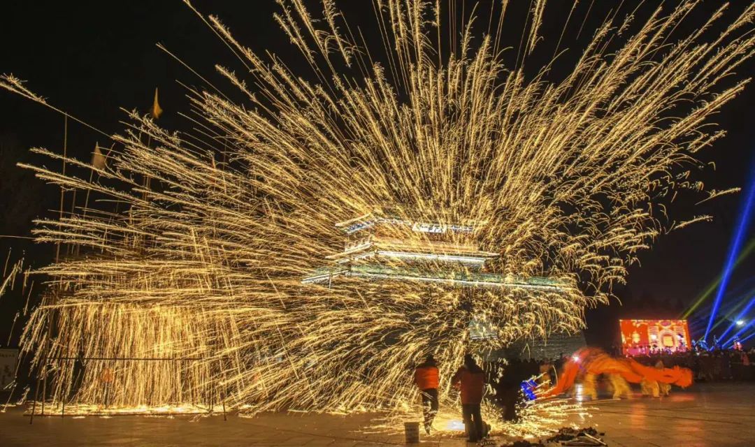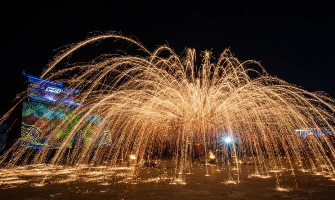 兵部分司门前身怀绝技的非遗匠人棒中的铁汁一击冲向天空迸散开来,流星如瀑、声震天宇,铁水变烟花。这是独属于中国人1600度的浪漫,配合上下翻腾的火龙,千年绝技迎盛世龙年!