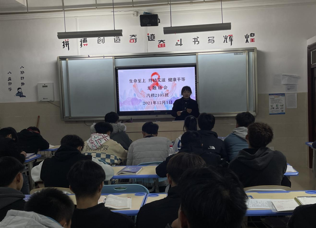 为将新时代学校预防艾滋病教育工作常态化,促进青年大学生身心健康,在 2021年“世界艾滋病日”来临之际,根据省教育厅预防艾滋病工作部署,结合学院宣传统战部《关于组织开展2021年“世界艾滋病日”宣传教育活动的通知》要求,12月2-3日,机电与城建系2020级及2021级部分班级在班主任的指导下,召开艾滋病专项主题班会。