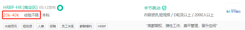 字节不仅福利好,薪资待遇也出了名的高。下面我们看字节招聘HR的一则JD。