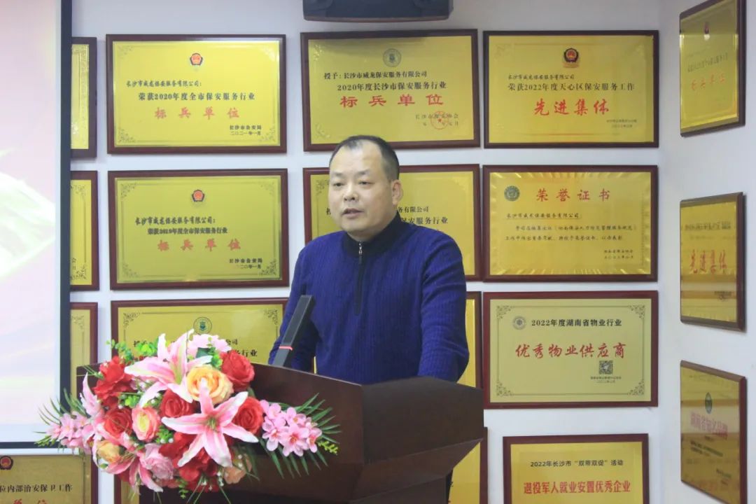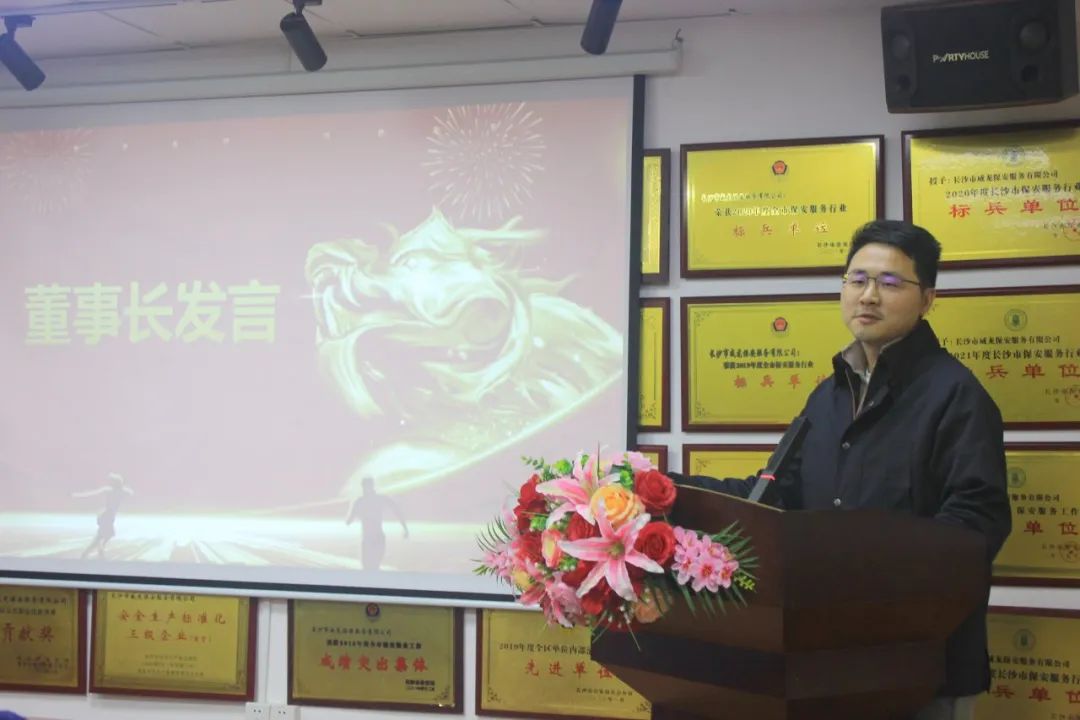 董事长陈卓用详实的数据和生动的事例,充分肯定了2023年公司发展建设取得的优异成绩,感谢全体员工立足岗位作出的积极贡献。号召大家在新的一年,认清新形势,对标新要求,围绕主业主责查漏补缺,扬长补短,努力在项目管理、保安服务、综合保障、企业文化等方面创造新佳绩。