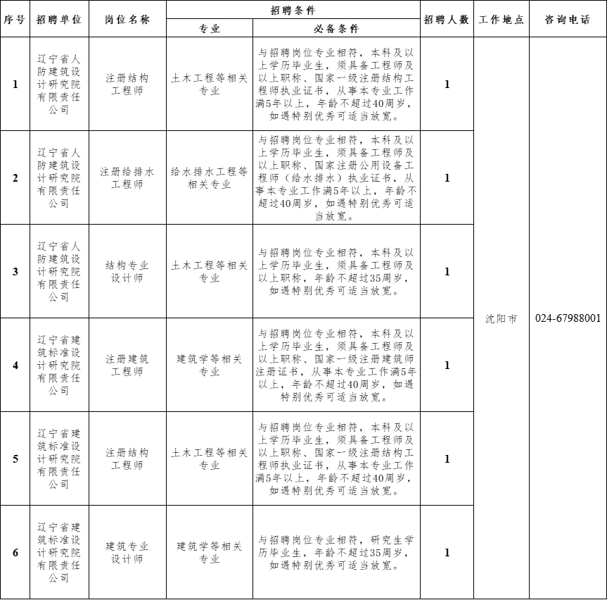 为满足业务发展需要,省人防设计院拟面向社会招聘专业技术人员3名,所属子企业省标准设计院拟面向社会招聘专业技术人员3名。现将招聘有关事项公告如下: