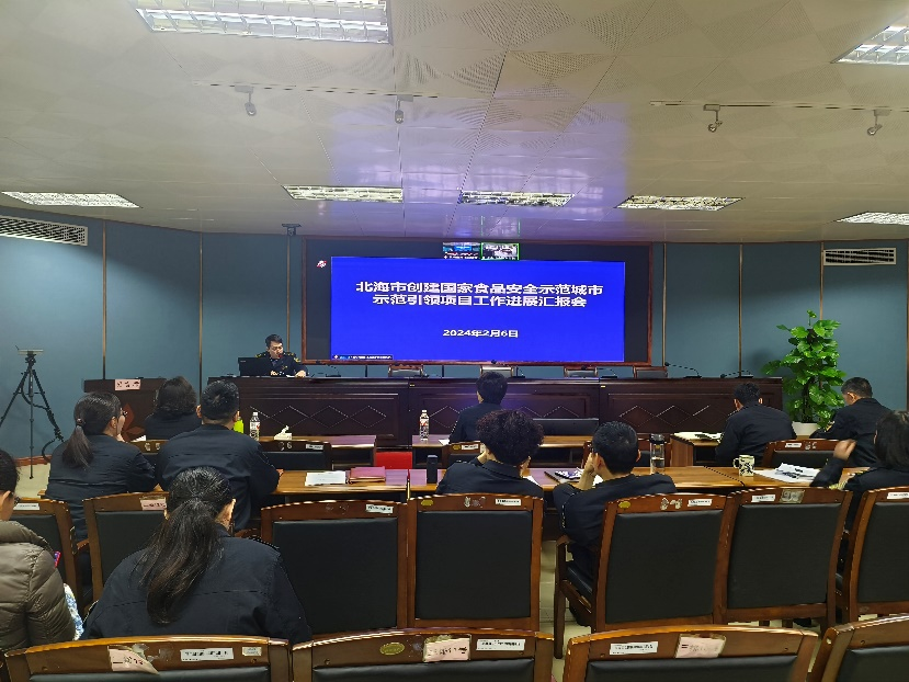 2024年2月6日,北海市食品药品安全办组织召开北海市创建国家食品安全示范城市示范引领项目工作进展汇报会。市食药安办常务副主任、市市场监管局副局长蔡碧玉主持会议。市市场监管局示范引领项目指标相关科室负责人及市创食安城专班全体人员参加会议。